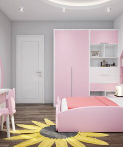 Thiết kế nội thất chung cư cho phòng ngủ của trẻ em. Với đối tượng trẻ nhỏ là em bé gái, Nội thất Xbox ưu tiên chọn màu hồng – tone màu đặc trưng của phái nữ để hỗ trợ việc phát triển giới tính từ sớm cho trẻ. Gam màu hồng có ý nghĩa mang lại sự nữ tính, ôn nhu, thư giãn và hạnh phúc. Đây cũng chính là lời gửi gắm đến gia đình khách hàng và con cái của họ. Các đồ nội thất trong phòng chủ yếu vẫn là tủ quần áo, giường gỗ đóng, bàn trang điểm, kệ sách, kệ trang trí… bền chắc). Các vật dụng nội thất được đóng chắc chắn theo yêu cầu, sử dung trên 10 năm với độ sáng bóng và sắc nét bền bỉ theo thời gian.