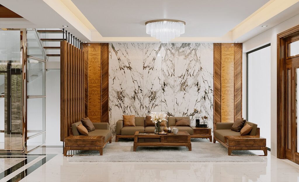 Với kiến trúc nhà phố liền kề hẹn ngang và có chiều sâu. Xbox đã tối ưu sử dụng mẫu nội thất tối giản, hiện đại, cụ thể là bộ sofa gỗ óc chó công nghiệp hướng tới mang đến không gian sống sang trọng, tiện nghi nhất.