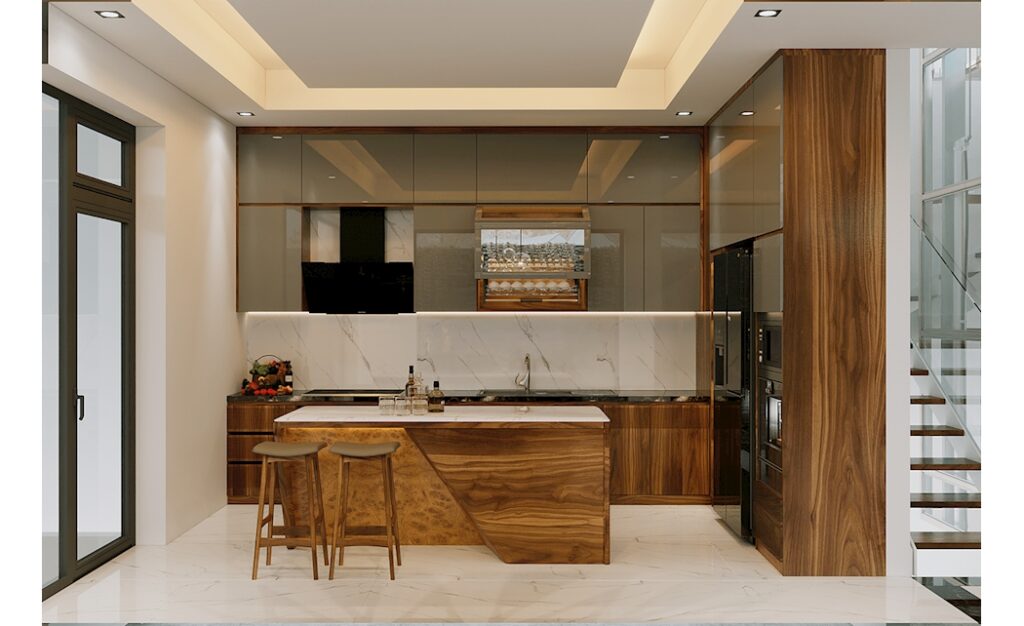 Đi vào phần không gian dành cho phòng bếp, Xbox hướng tới một không gian sang trọng và thư thái nhất cho gia chủ. Đây có thể là nơi gia đình quây quần thưởng thức bữa ăn đơn giản, ấm cúng nhưng cũng có thể là không gian tiệc sang trọng mỗi dịp khách đến.
