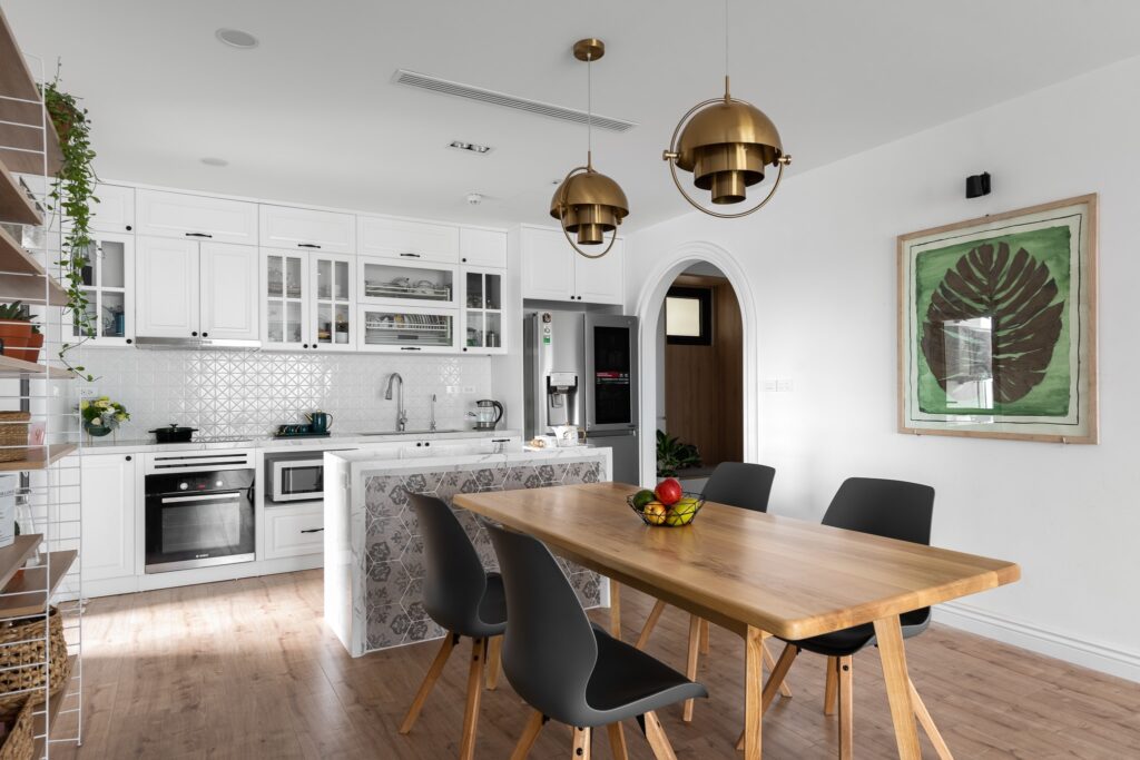 Một không gian nhỏ chỉ dưới 50m2 nên tận dụng càng nhiều không gian mở sẽ càng tạo được sự thông thoáng cho căn hộ. Ví dụ phòng khách với phòng bếp sẽ thiết kế những tấm vách ngăn với những tông màu khác nhau sẽ tạo ra những không gian mở liền kề dành cho căn hộ chung cư