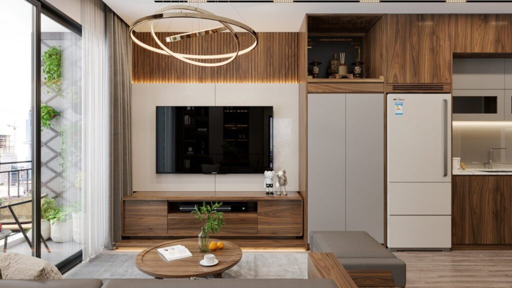 Phòng khách là hạng mục đầu tiên trong dự án thiết kế nội thất Picity High Park mà chúng tôi sẽ giới thiệu. Theo đó, chúng tôi sẽ thiết kế không gian phòng khách sao cho có thể tận dụng được nhiều nguồn ánh sáng tự nhiên nhất. Quý khách hàng có thể lựa chọn tông màu trắng – nâu chủ đạo để mang lại cảm giác sang trọng, hiện đại cho khu vực này.