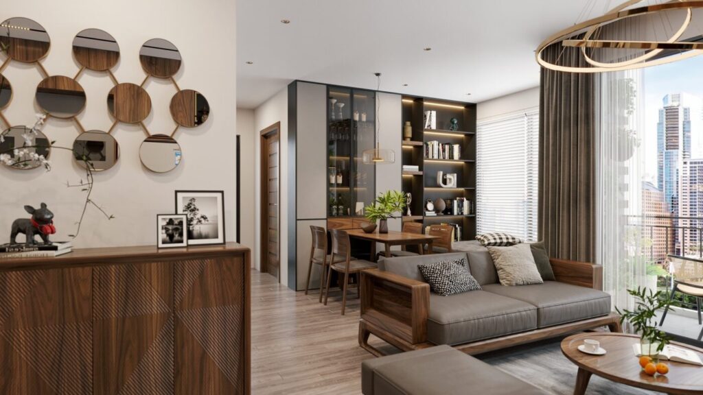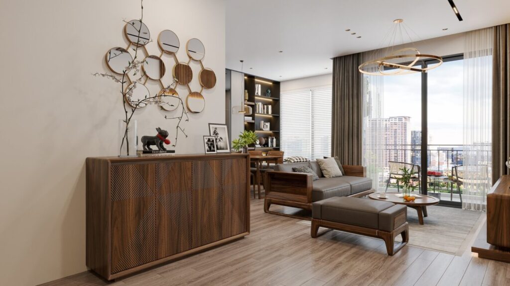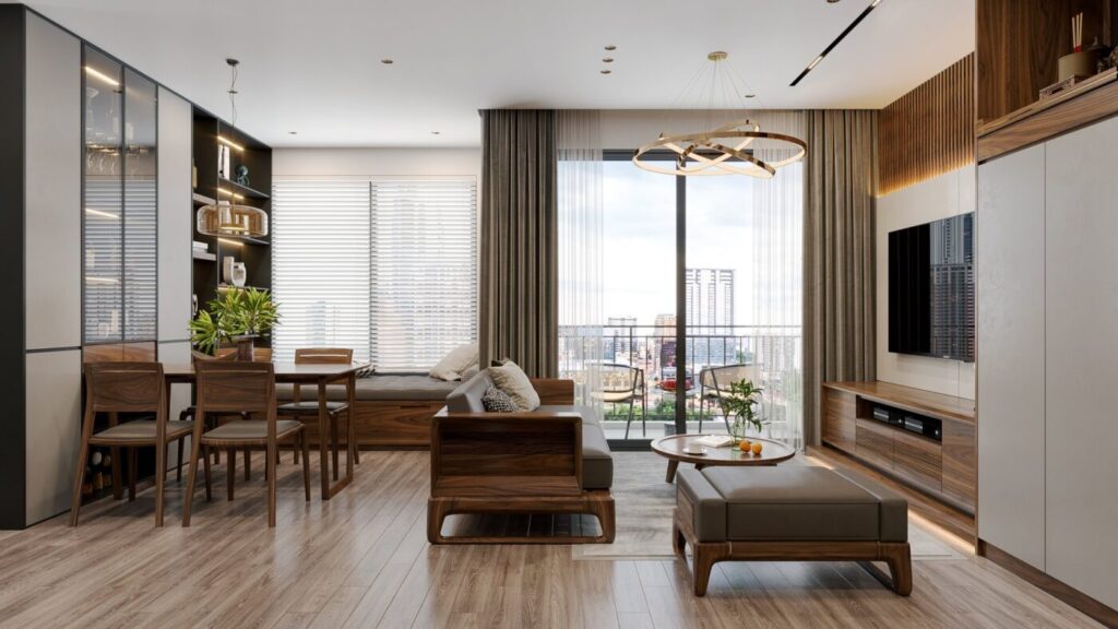 Nếu muốn, khách hàng có thể thêm một bộ sofa cùng bộ bàn gỗ để tạo sự nổi bật cho không gian nhưng vẫn giữ được sự hài hòa, thanh lịch.