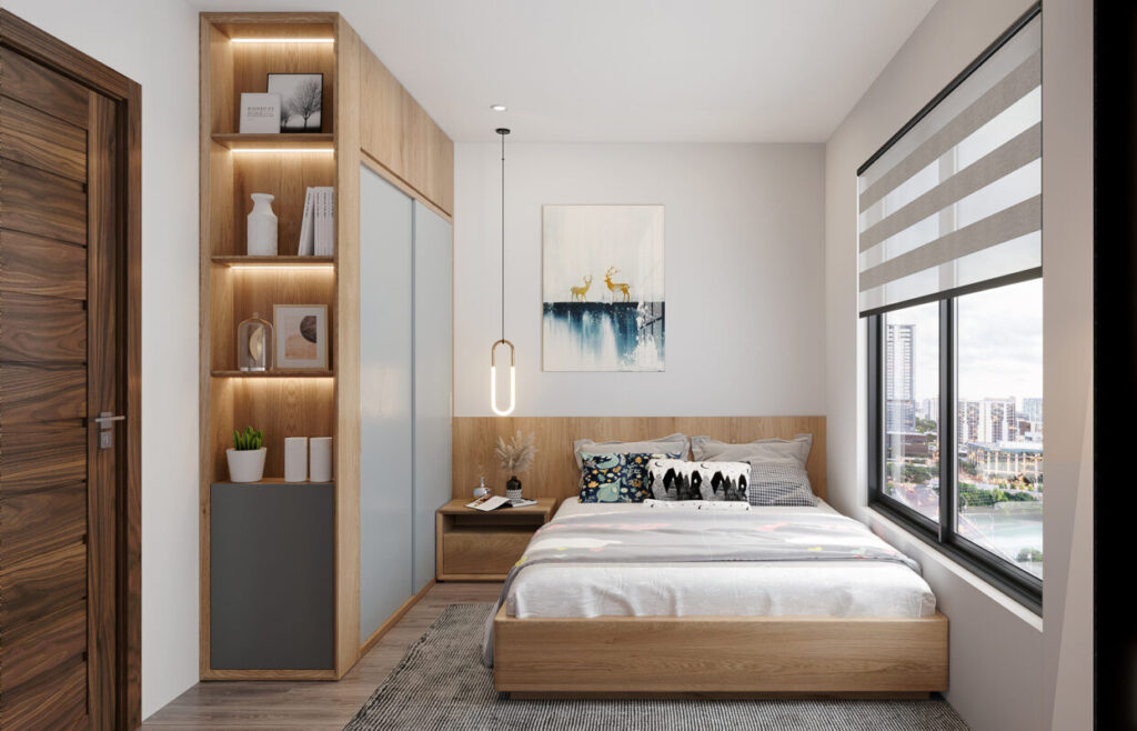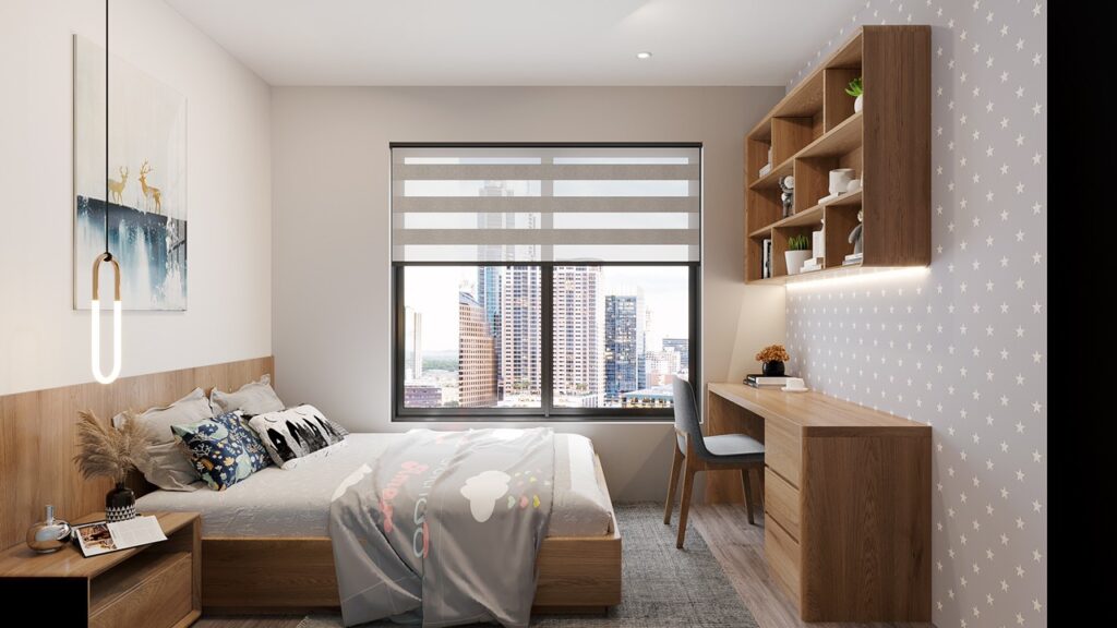 Phòng ngủ là nơi gia chủ có thể thoải mái thư giãn sau những giờ làm việc căng thẳng, mệt mỏi. Với thiết kế nội thất chung cư Picity High Park, chúng tôi sẽ tập trung tối giản hóa nhưng vẫn đảm bảo không gian có đầy đủ tiện nghi sinh hoạt.